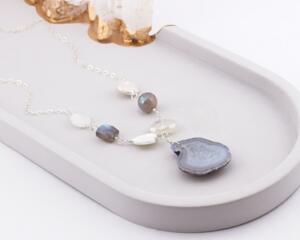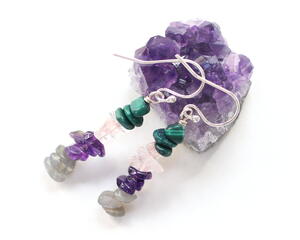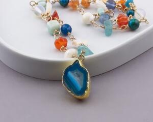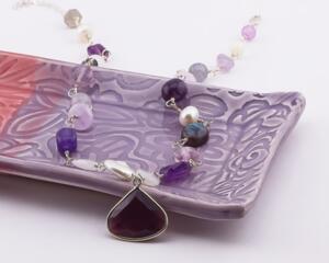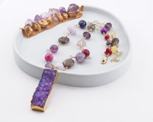 Purple Druzy Pendant with Multi Crystals and Gemstones